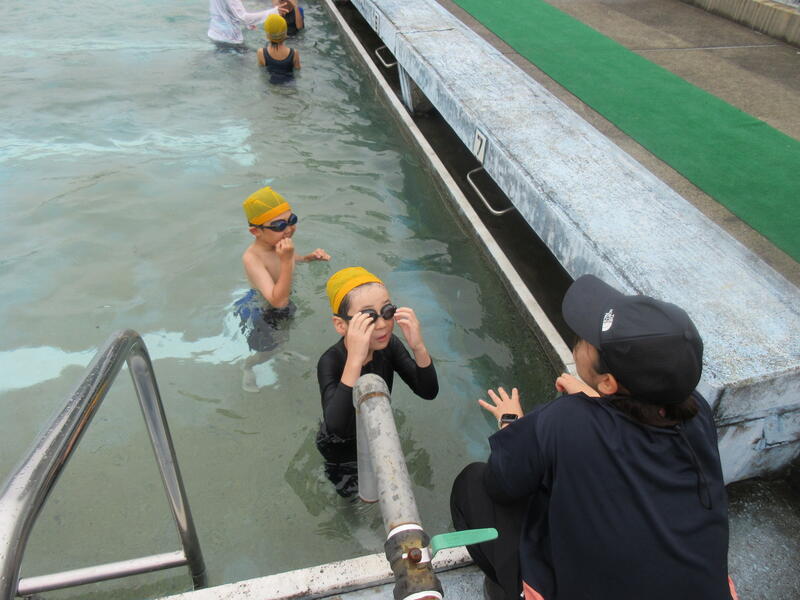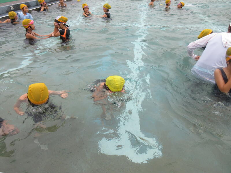 2年生は泳ぎに自身がある児童と不安な児童に分かれて練習中