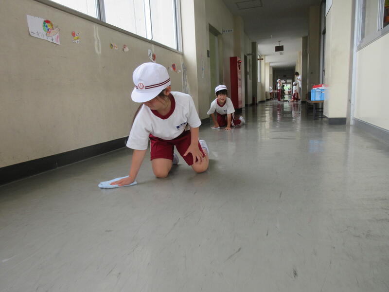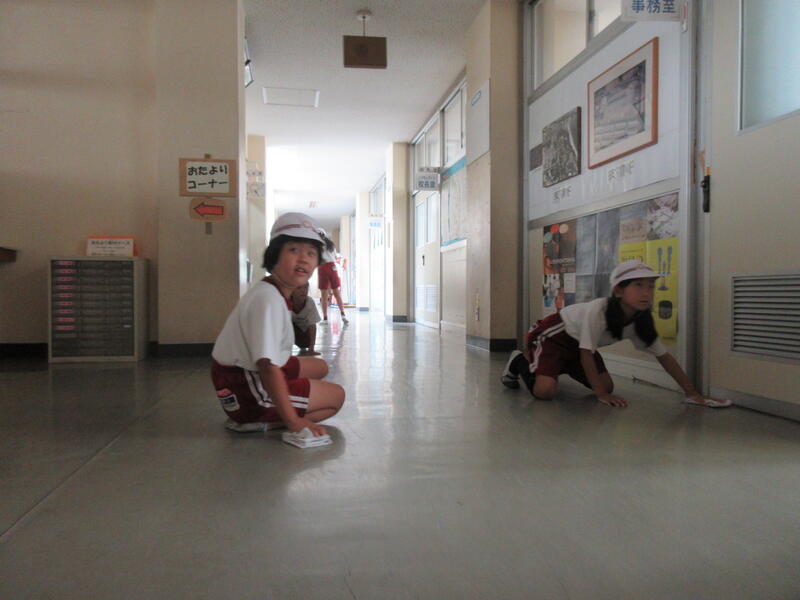教室はもちろん、廊下、昇降口、体育館などに分かれて清掃します