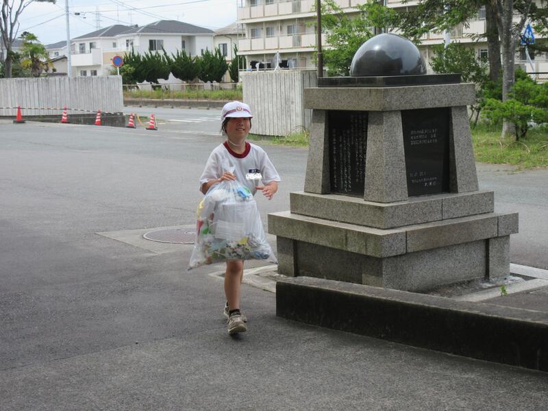 教室の集まったごみは、外のごみ保管庫まで運ぶので大変です