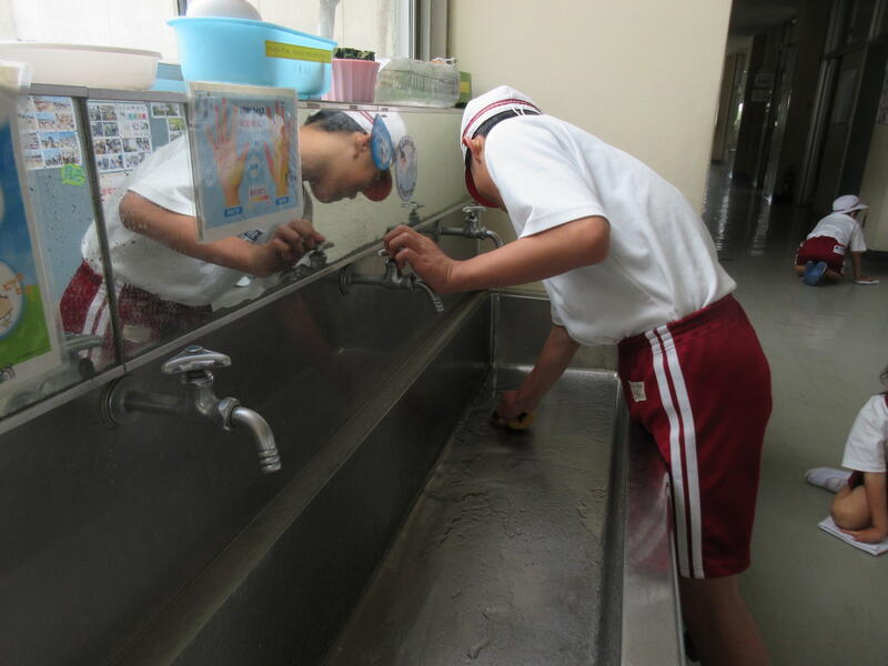 毎週、月・水・金曜日は給食後、たてわり清掃を実施しています