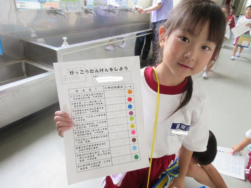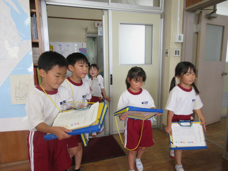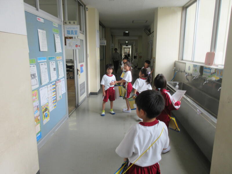 「しつれいします。1年1組〇〇です。学校探検に来ました。入ってもいいですか。」と、あいさつや入室のマナーを覚える勉強でもあります。