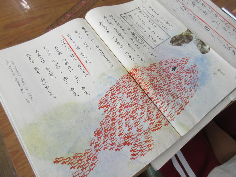 2-2は国語の時間「スイミー」。本作品は長い間親しまれ、教科書に掲載されていることが多いので、保護者の皆さんも2年生の頃学習したことと思います。