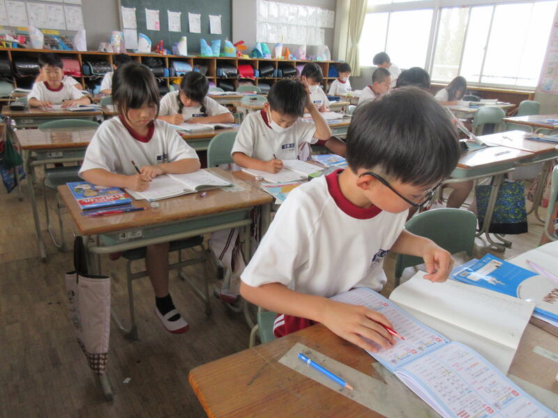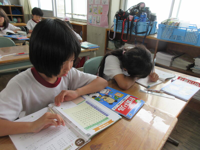 自分の進度で教科書問題やドリル学習を進め、担任に確認してもらっていました。