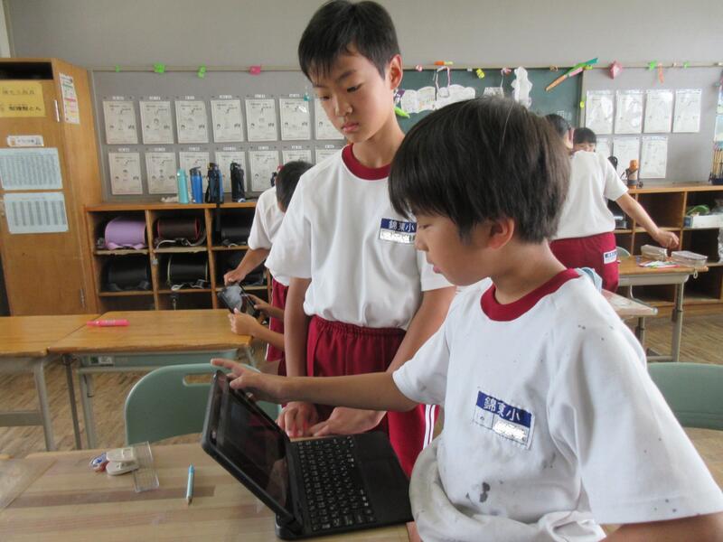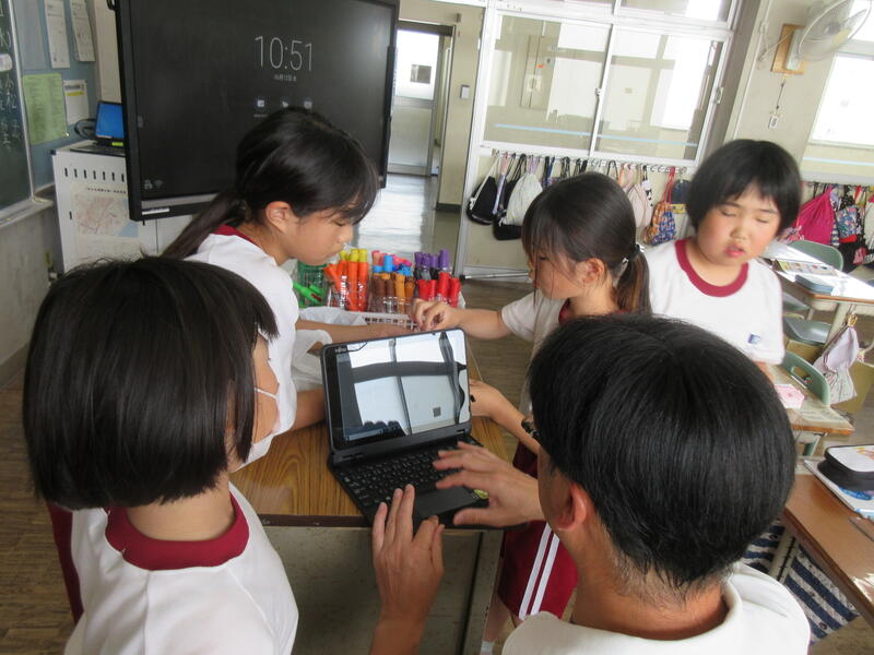 グループごとに文房具などをタブレットでコマ撮りし、連続再生する動画を制作しています。絵を描く。物を作るとはまた違った創作活動ですね。
