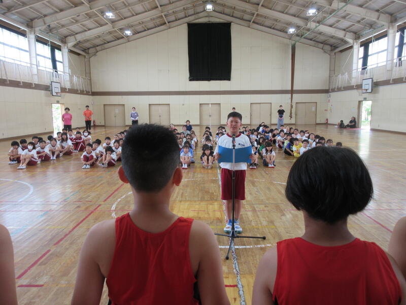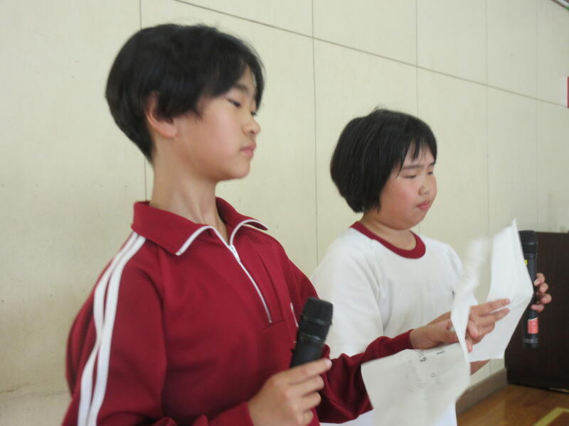 5年生代表から「みなさんはぼくたちのあこがれです」と、激励の言葉をもらいました。