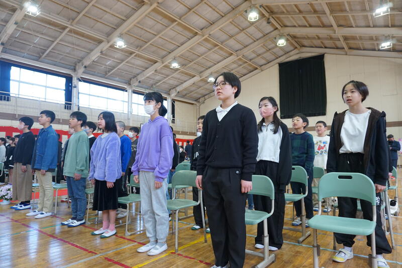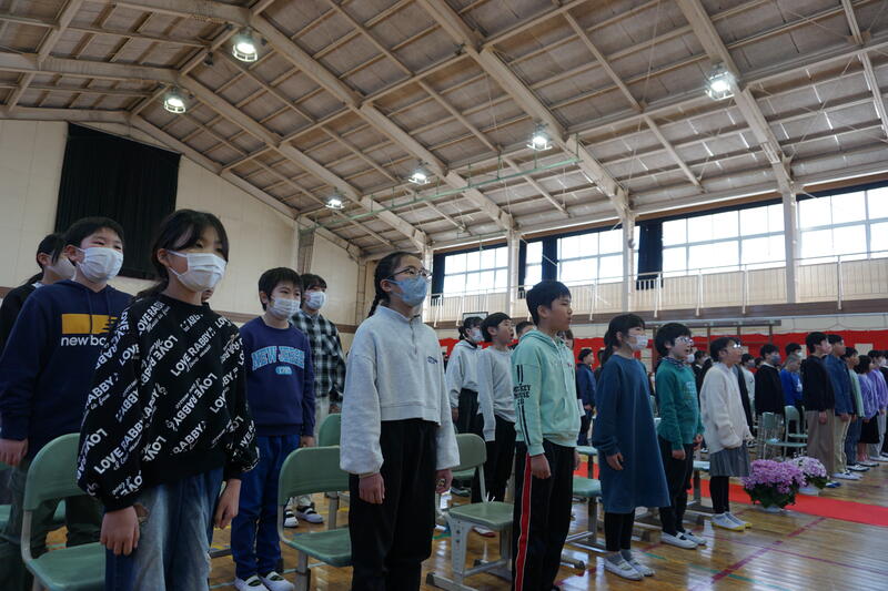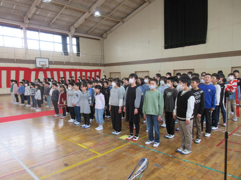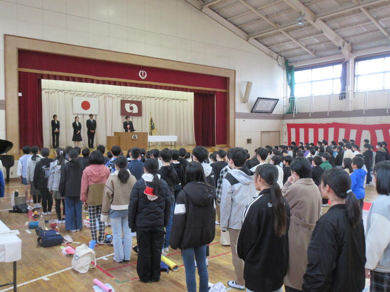 体育館で離任式を実施。最後のお別れのけじめを付けました。