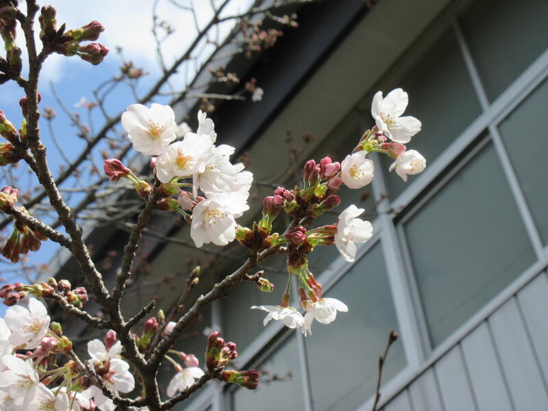 体育館脇の桜も入学式・始業式に合わせたように開花しました!