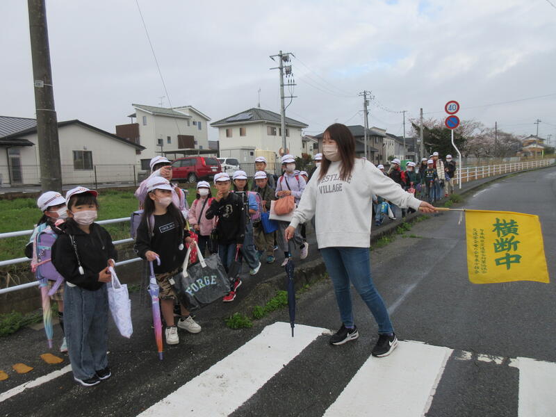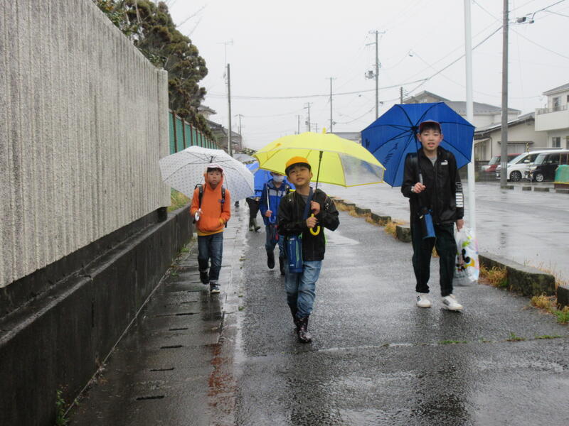 新1年生が集団登校する初日。あいにくの天候となってしまいました。