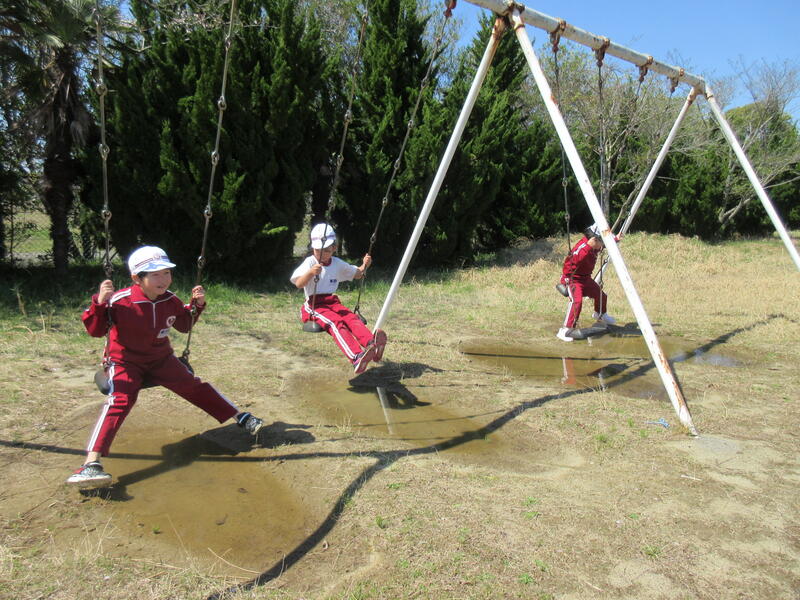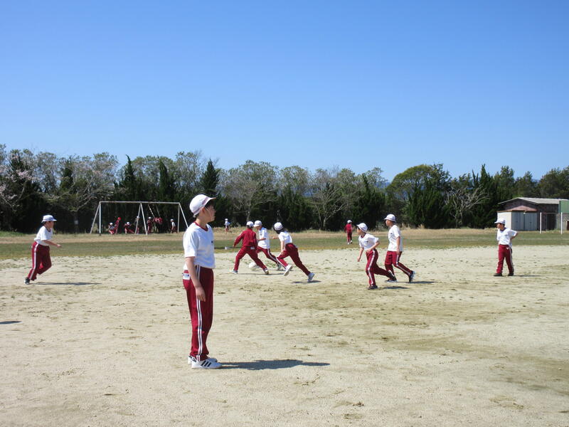 昨日の雨の影響で、まだ水たまりが残っているところもあり、中にはどろんこになって着替えた児童もいました。