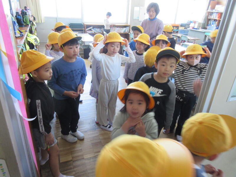 1年生の大切なアイテム「黄色い帽子」をかぶって校庭へ!