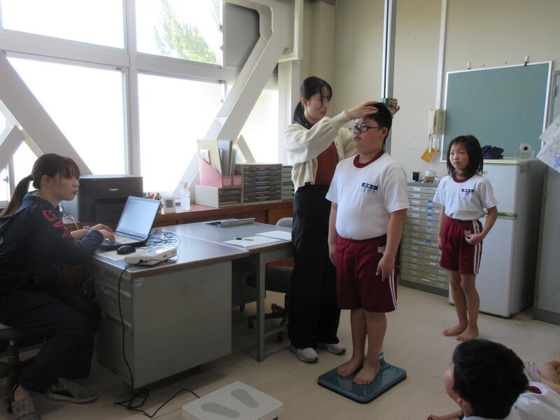 保健室では発育測定が始まりました。心身共にたくましくせいちょうしているか確認するために毎学期はじめに身長や体重を測定し記録して保護者の皆様にお知らせしています。