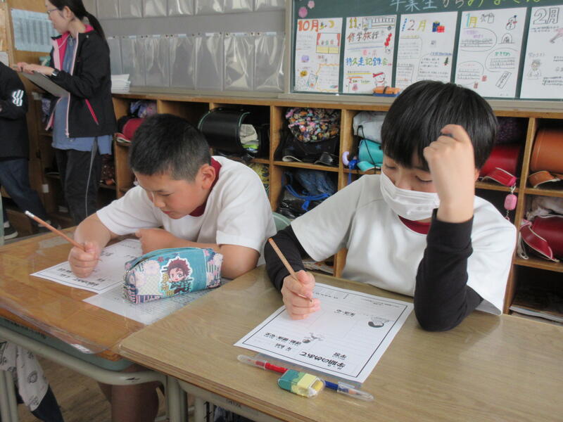 一人一人の頑張りが、学級や学校をよりよくしていくということを考えながら「下級生に優しい学校のリーダーになる」「予習復習をして成績を上げたい」など自分のめあてを書いていました。