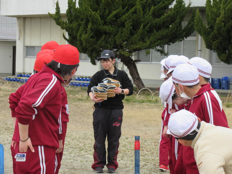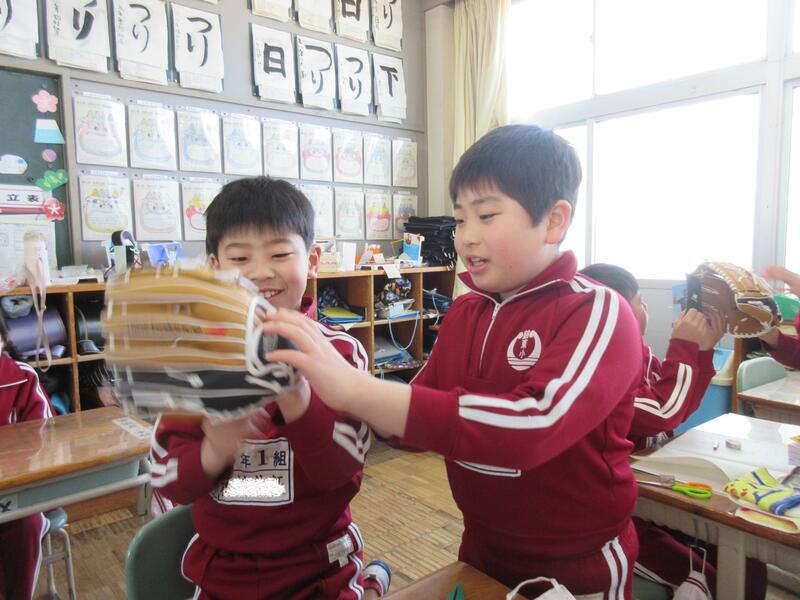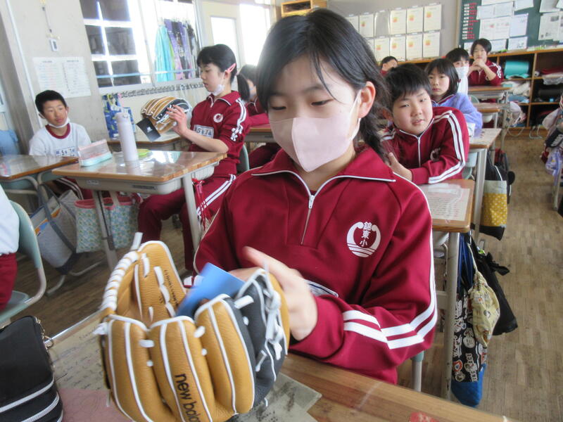 今日出席していた児童全員が手に取り、笑顔でグローブの感触を楽しんでいました。初めてグローブをはめる児童もたくさんいましたので、野球というスポーツに親しむよいきっかけになったことと思います。