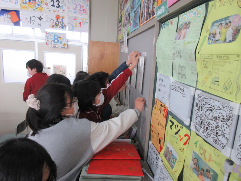 掲示物の整理をしたり互いのメッセージカードを書いたり・・・。