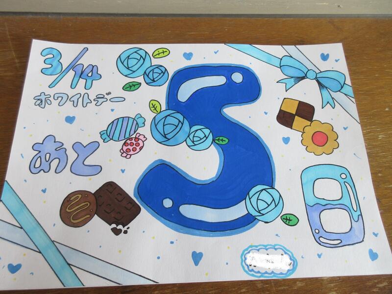 階段の掲示板には、4年生が卒業生のために作ってくれた掲示物も登場し、卒業をお祝いするムードが高まってきています