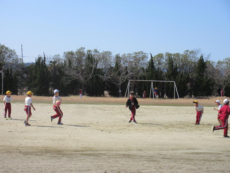 グローブは3つなので、ゲーム中全員が使うことができないのですが、一部の子どもがはめているだけでちょっと「野球」っぽい感じになっています。