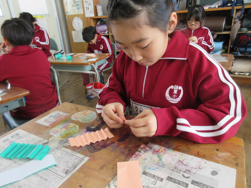 本校では、体育、保健、図書、放送、代表・集会の各委員会があります。悩みながら記入している姿は、4月から上学年の仲間入りをする頼もしい表情に見えます。