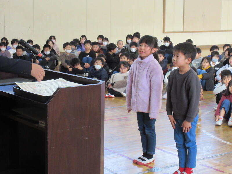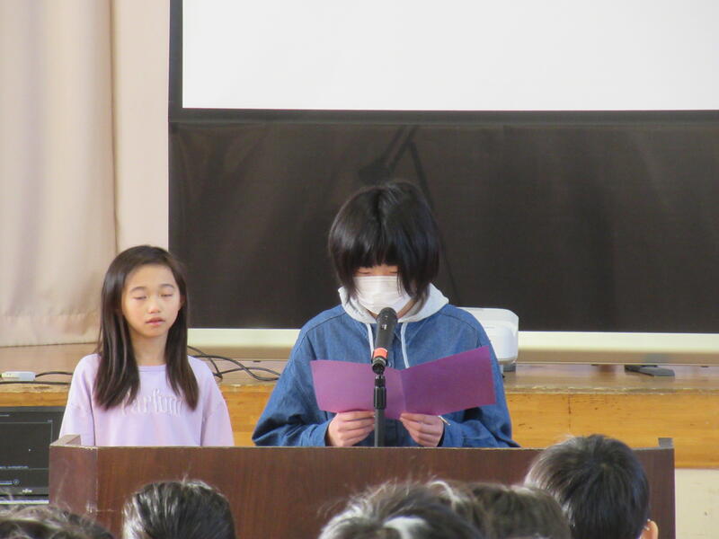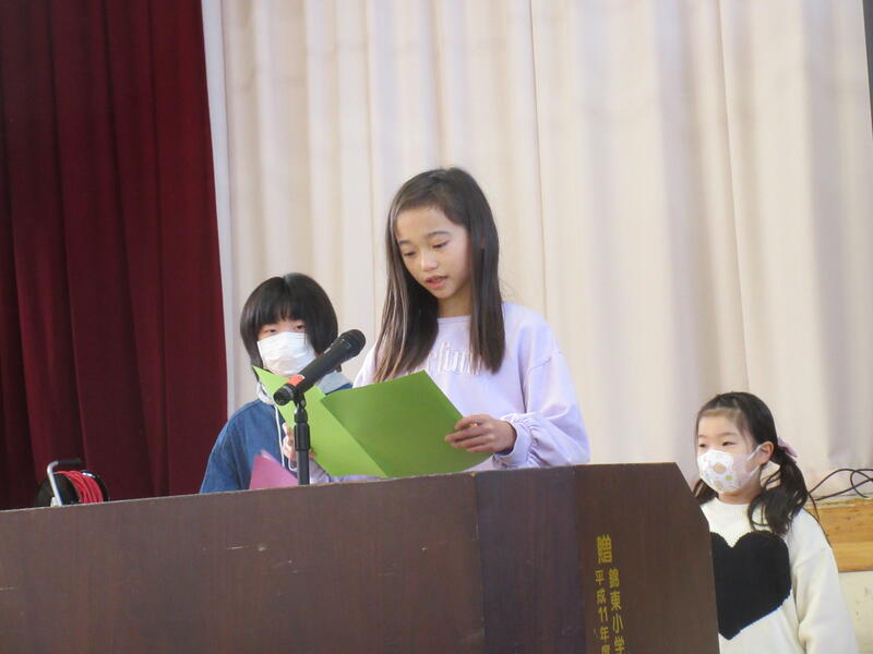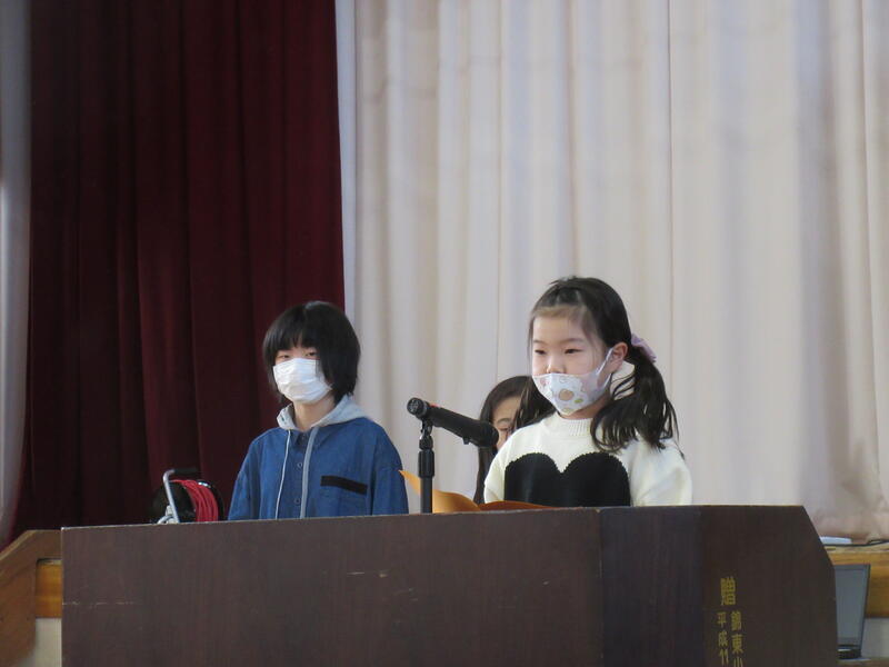 続いて3人の代表児童が2学期の振り返りと冬休みの過ごし方を発表しました。