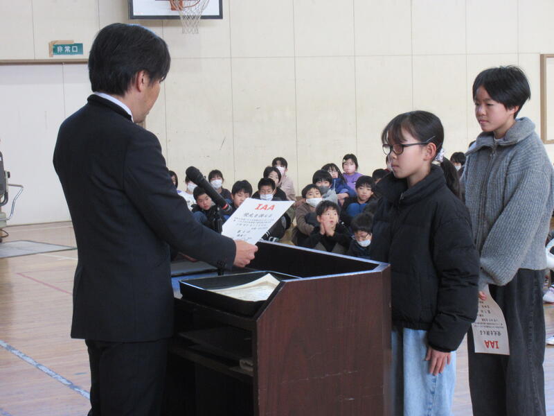 校長からは正月早々起きた能登半島沖地震と航空機衝突事故を教訓に「自分の命や安全を守るために先生の話をよく聞けるようになること」「自分で考え判断し行動できるようになること」の大切さを話しました。