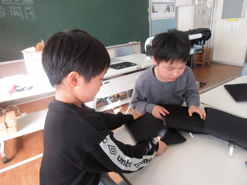 また今日は児童用タブレットをソフトケースに充電器と一緒に入れて持ち帰ります。ご家庭での適切な活用をお願いします。