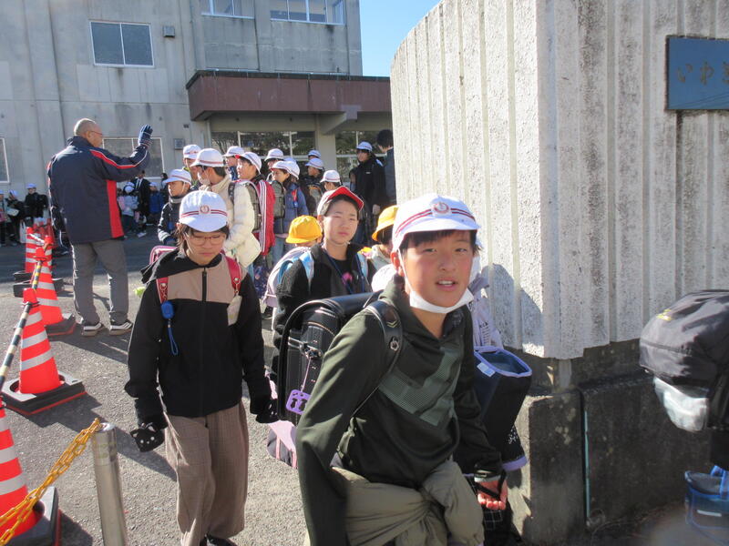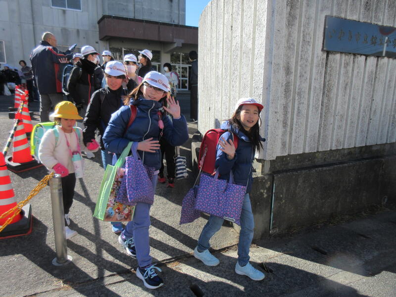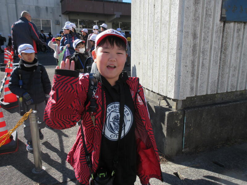 最後に昇降口前に全校生が集まり代表児童の「よいお年を さようなら!」のあいさつ。