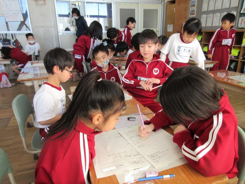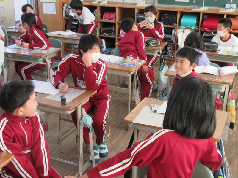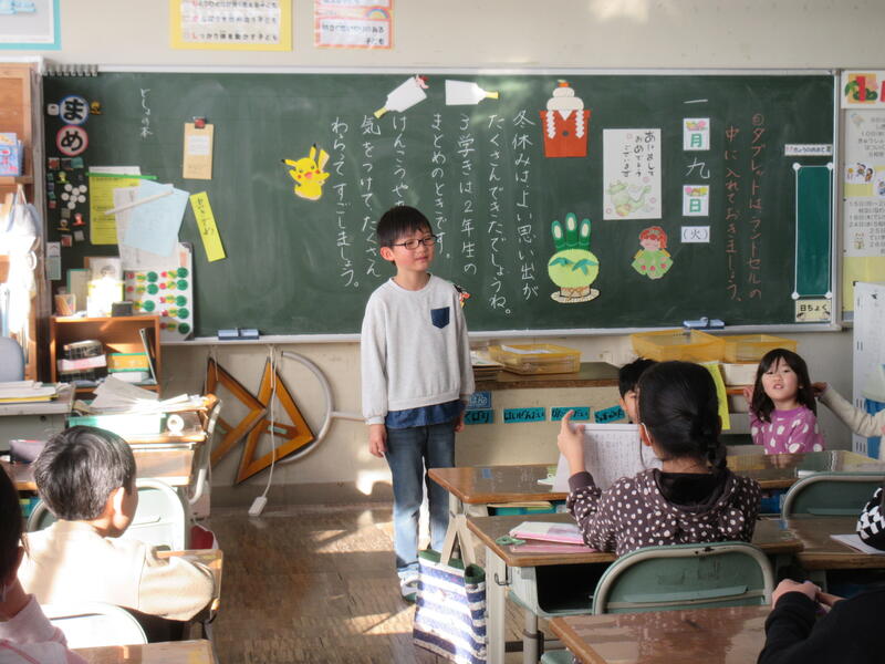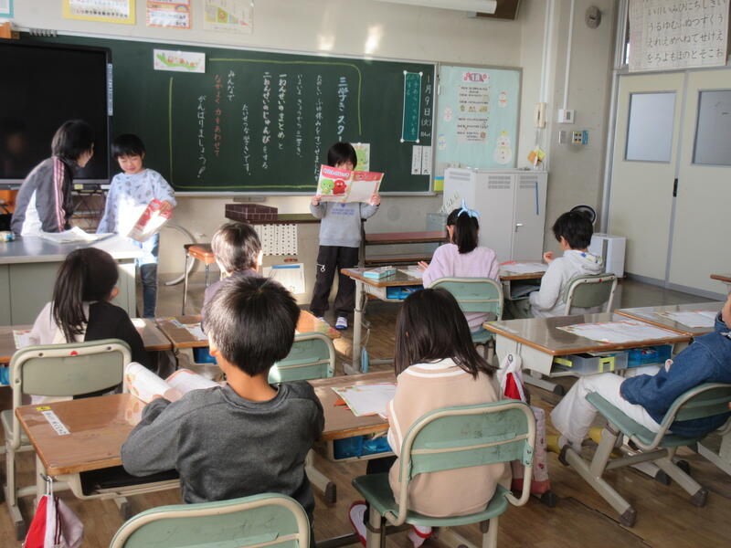 各クラスで宿題を提出したり冬休みの思い出発表が行われたりしていました。