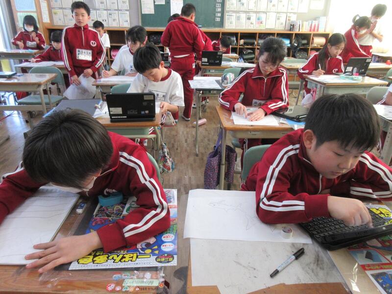 5年生も同じく図工の時間 こちらは今日から版画制作がスタート。