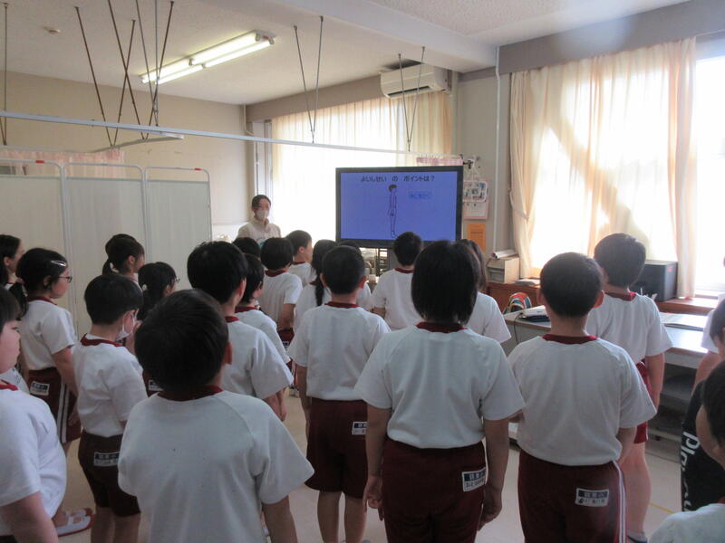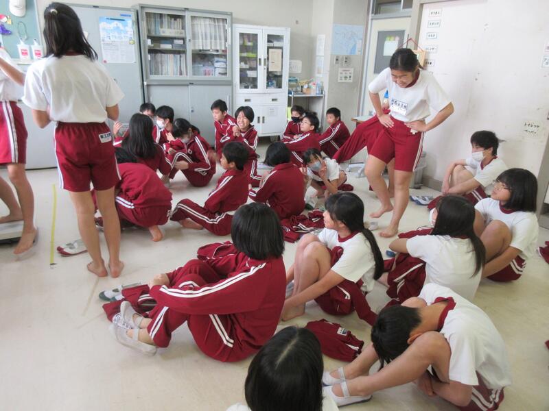 3年生は発育測定を実施 養護教諭からは正しい姿勢について保健講話がありました。