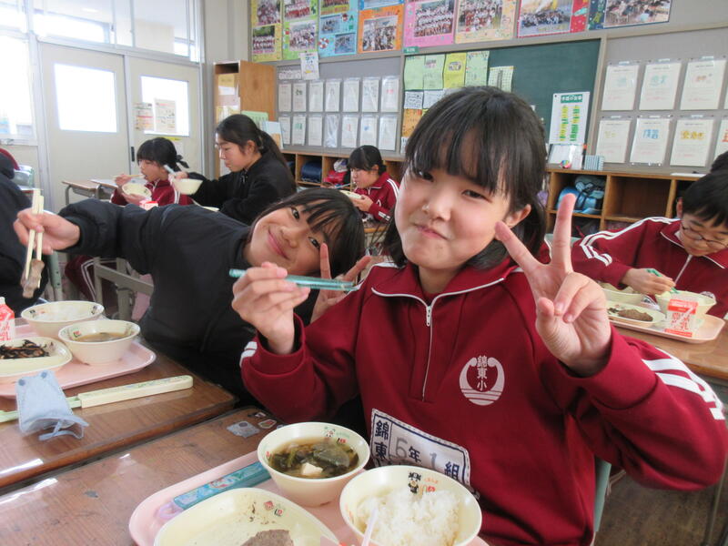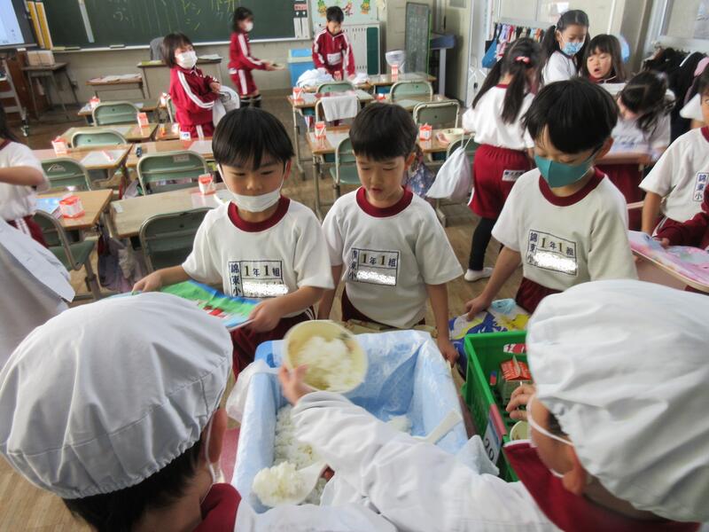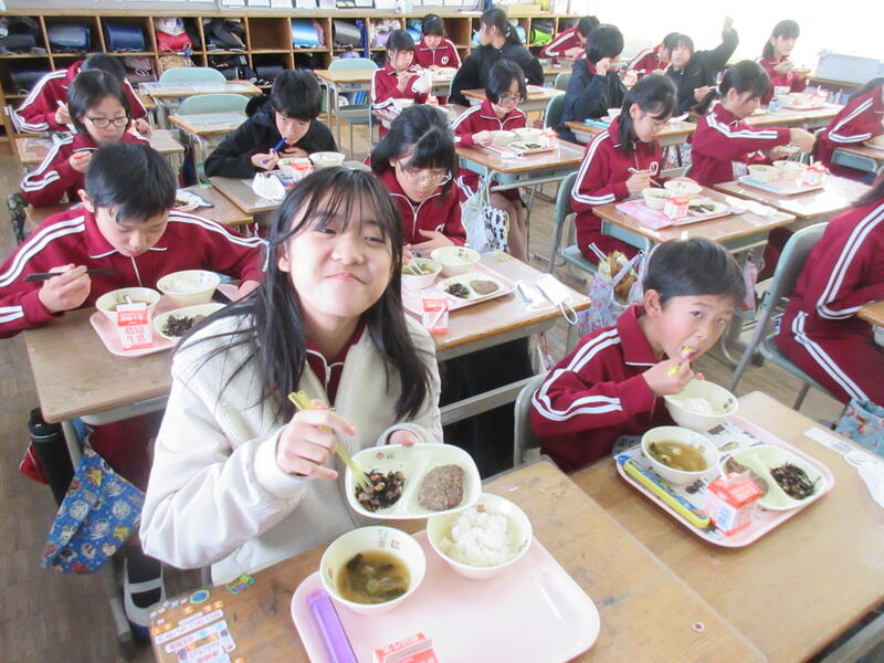 「久しぶりの給食どう?」と聞くと「おいしい!」と、二つ返事がどのクラスでも返ってきました。