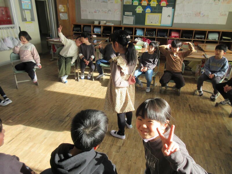 給食後のクラスタイムには学級の係によるイベントが各クラスで行われていました。