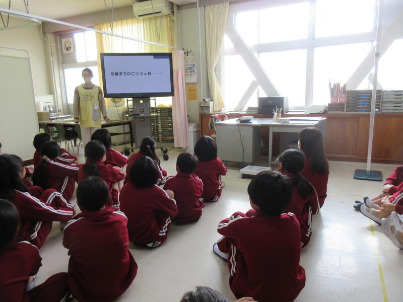 最後に養護教諭から「6年間で伸びる髪の毛の長さは?」「6年間で心臓は何回動いている?」等、6年間という時の長さと成長を数字で実感できるクイズが出されました。