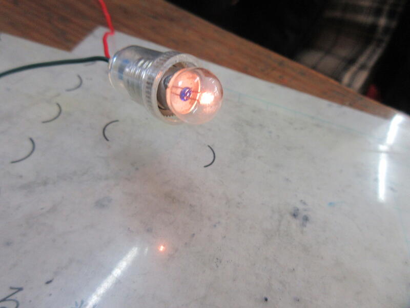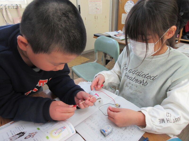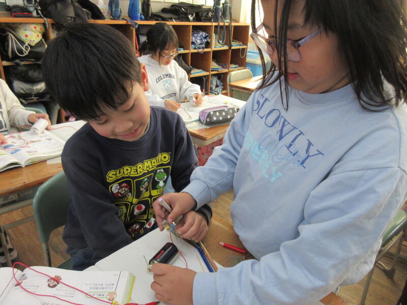きちんと回路が完成すると豆電球に明かりが灯りました。