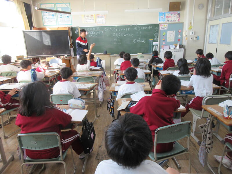 25×4=100をもとにして、25×40=?暗算でできる理由を発表しています。「じゃあ、25×12は暗算でできる?」という担任の問いに、数人がすぐに「分かった!」と反応していました。数の仕組みを理解する力が付いてきていますね。
