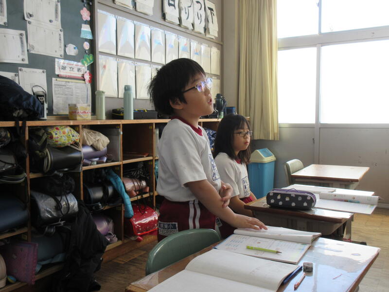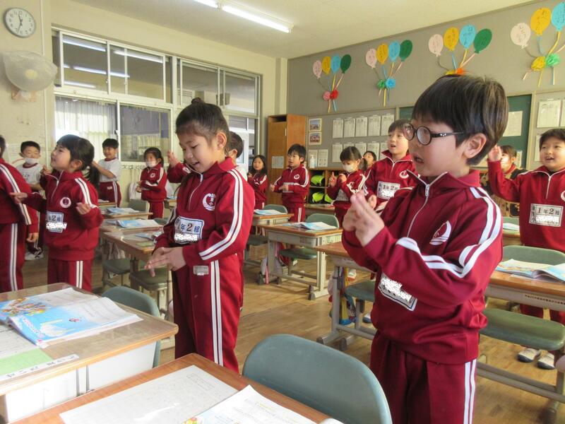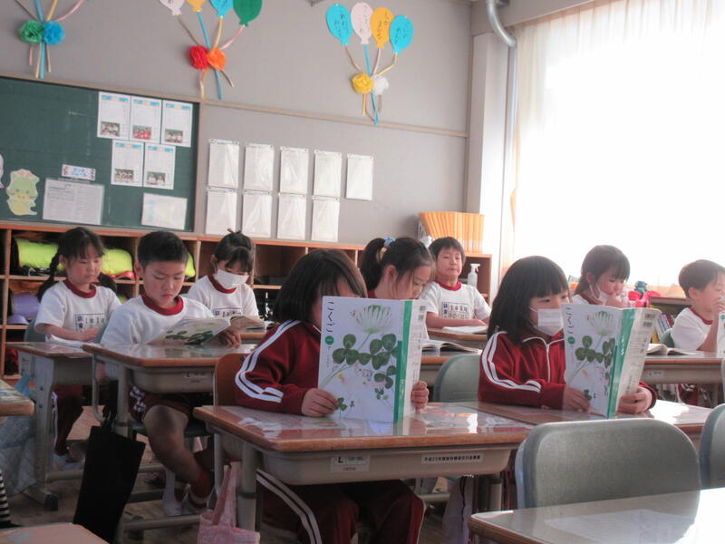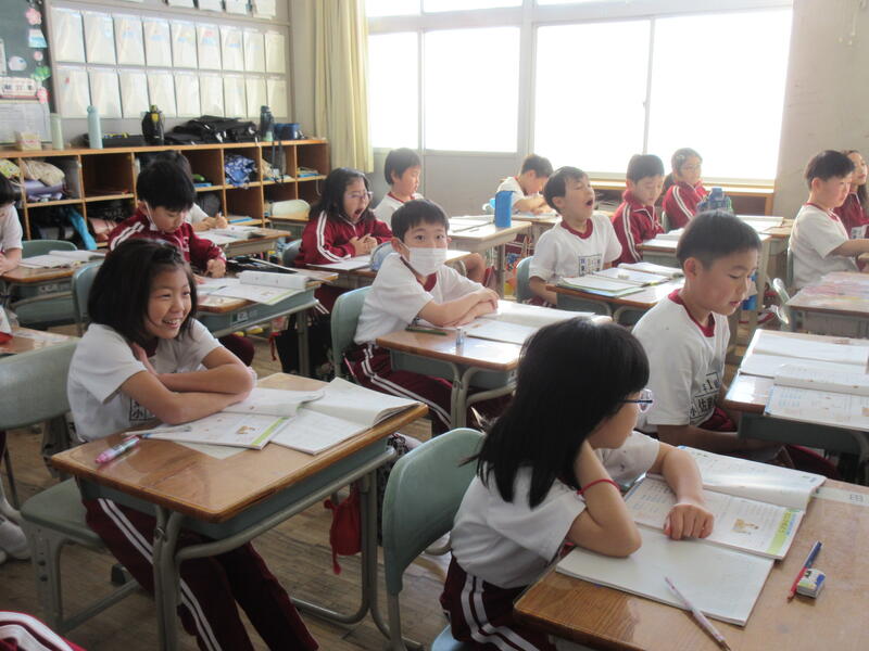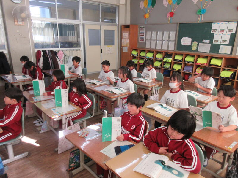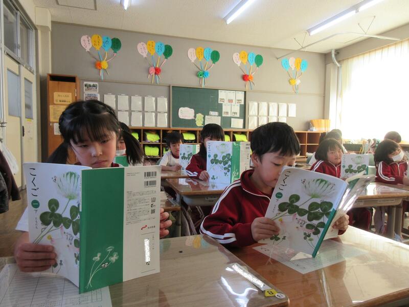 1年生は国語の時間 おなじみに「たぬきの糸車」の学習が今日から始まりました