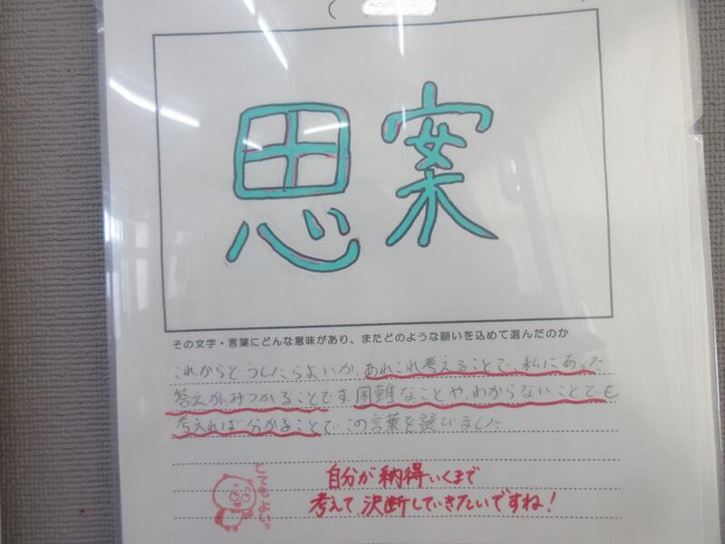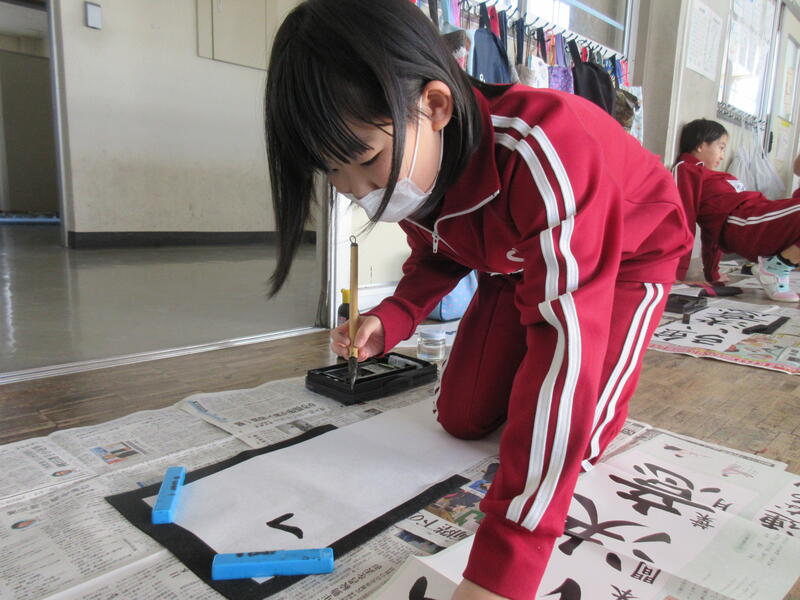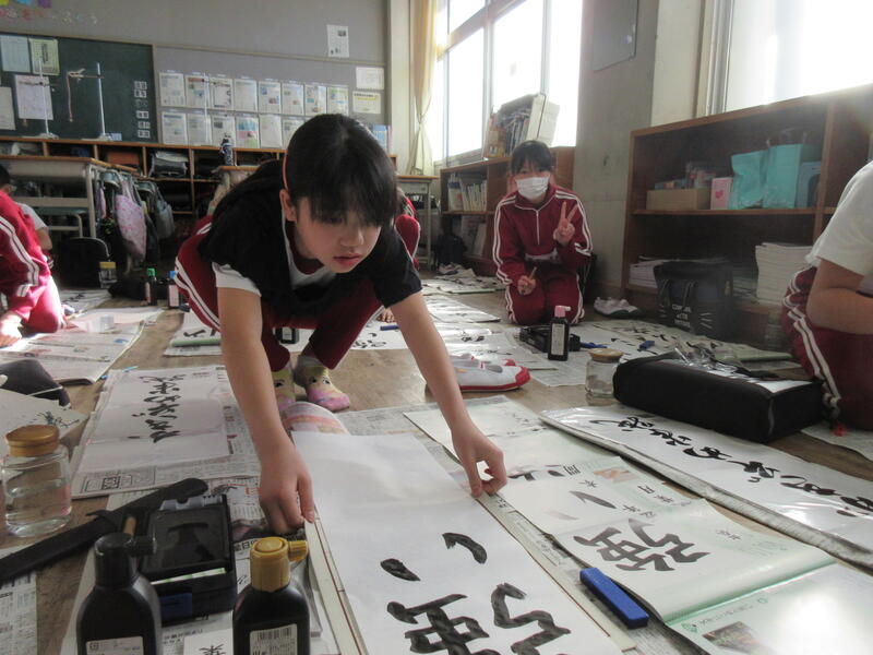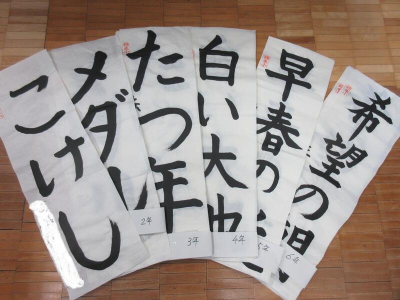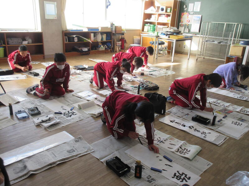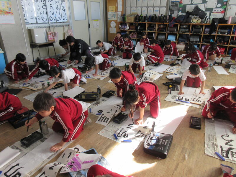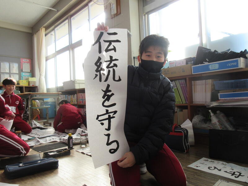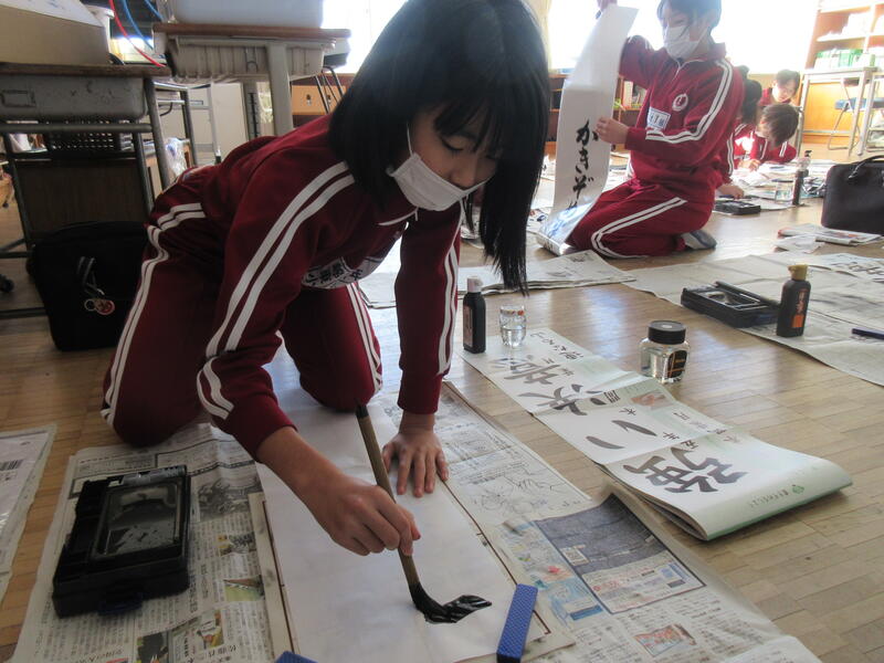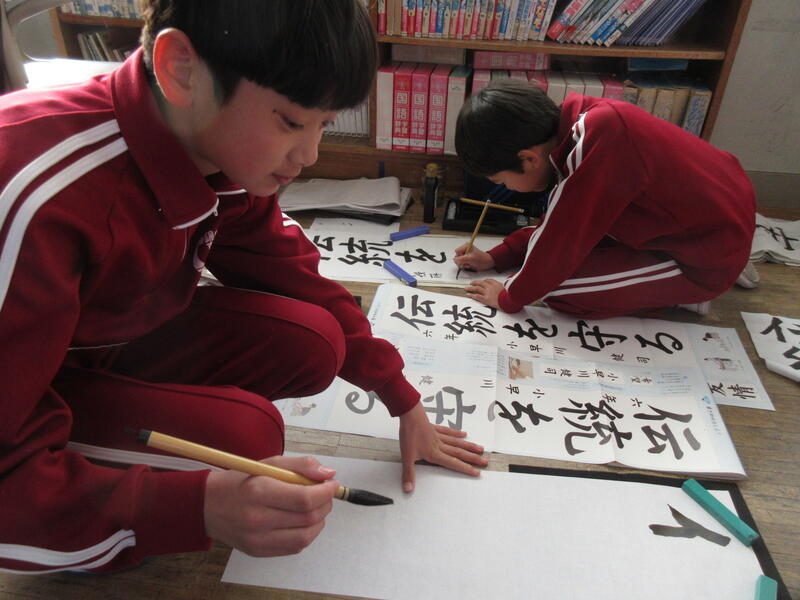 昔は、正月に自宅で一年の決意を書にしたためたと言われていますが、現代ではそのような伝統行事を行っている家庭は少ないと思われます。まさに6年生が書いた「伝統を守る」の通り、こういった日本の伝統を継承していくことも学校には求められている役割の一つです。