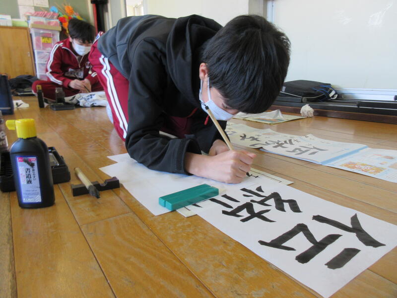 2校時 3・5・6年生が書写の時間、書き初めを行っていました。