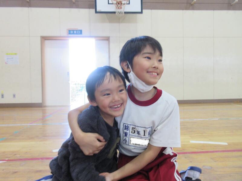 他学年との交流ができてみんなニコニコ笑顔で体育館から教室に戻っていきました。