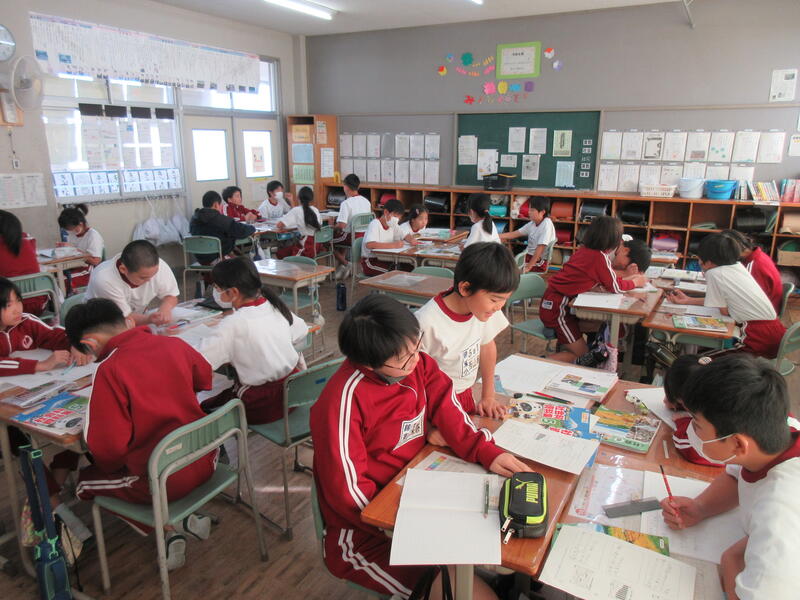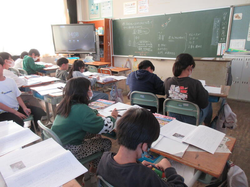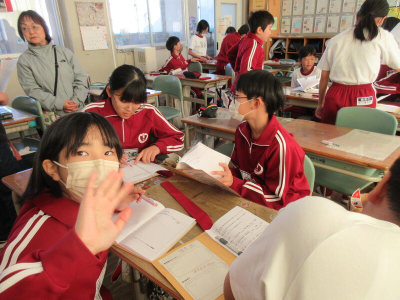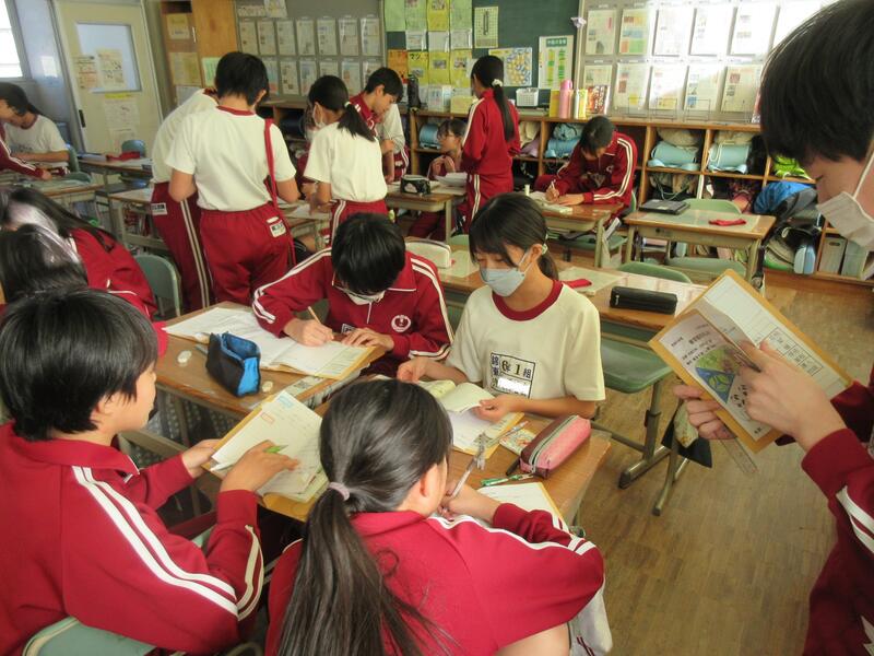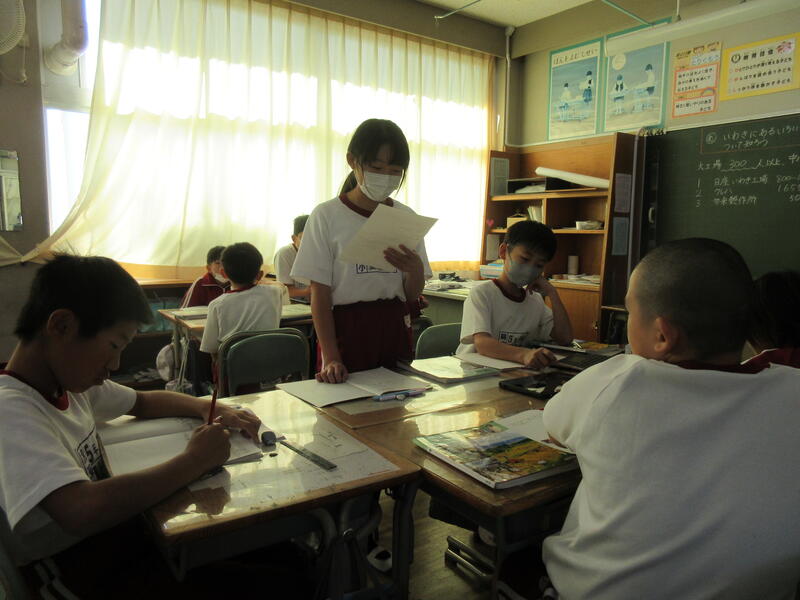 3校時 5年生は社会科の授業 近年海外生産をする工場が増えている現状から、そのメリットとデメリットについて考えました