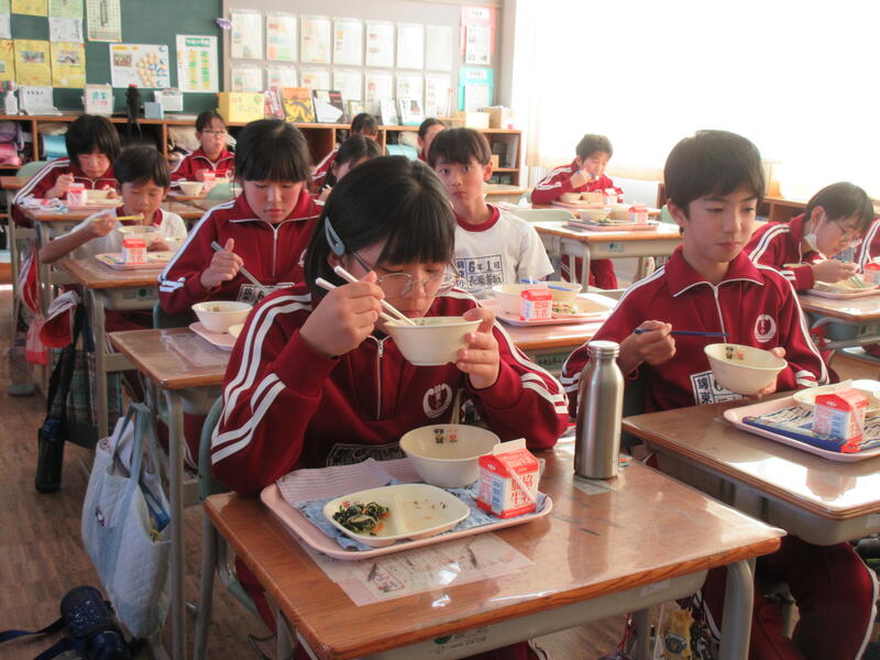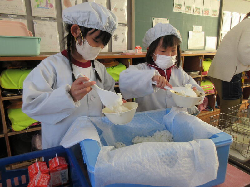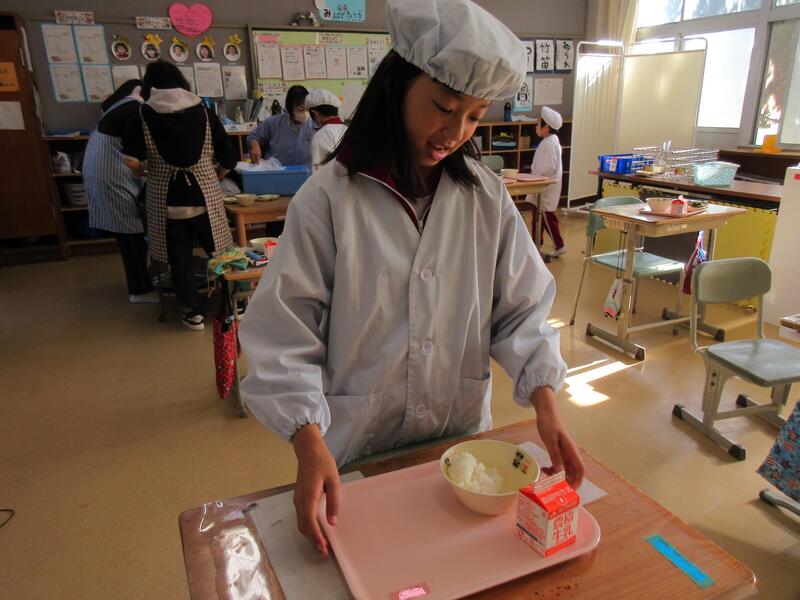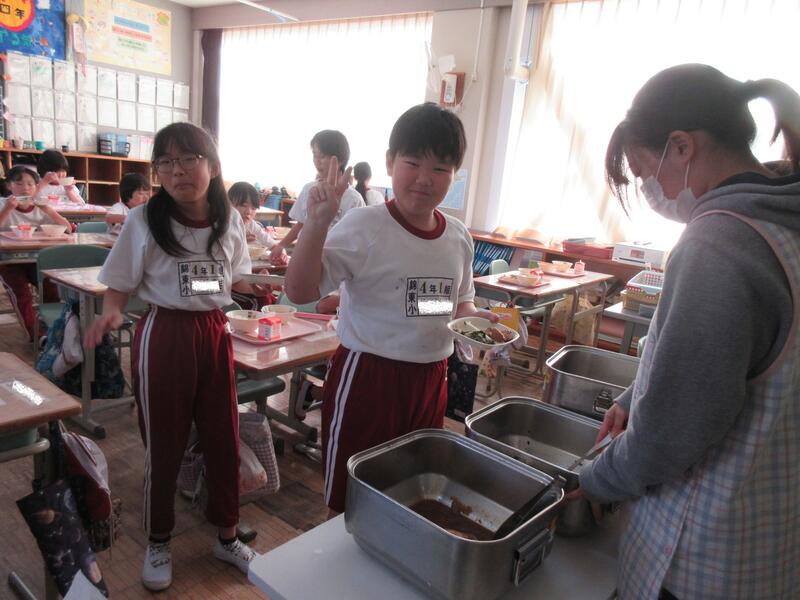 おかわりに並んでいる児童もたくさんいました。たくさん食べて丈夫で健康な身体を作りましょう!
