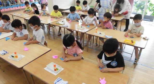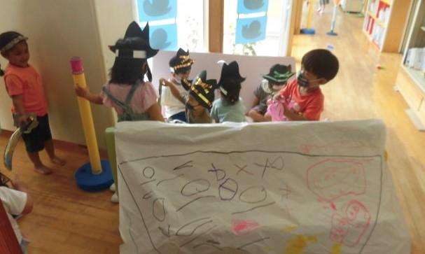 年少さんは、海賊になったまま、七夕飾りを作りました。