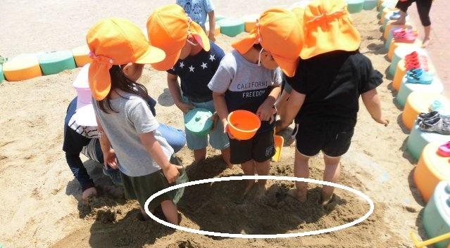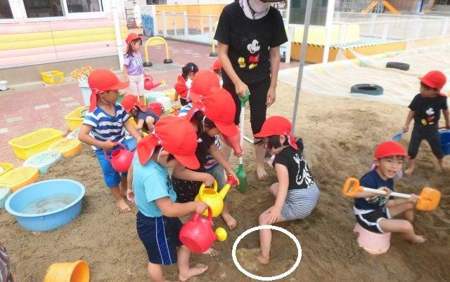 年中さんも・・・砂場で・・・泥水遊びを楽しみました。