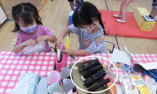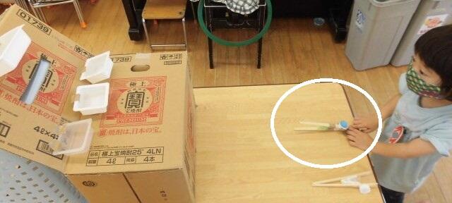 下は、年中さん(男子)が 洗濯ばさみのバネを利用して