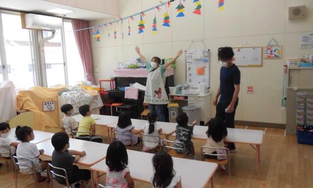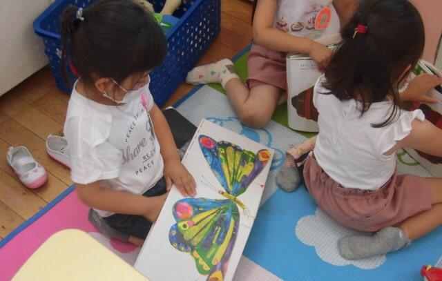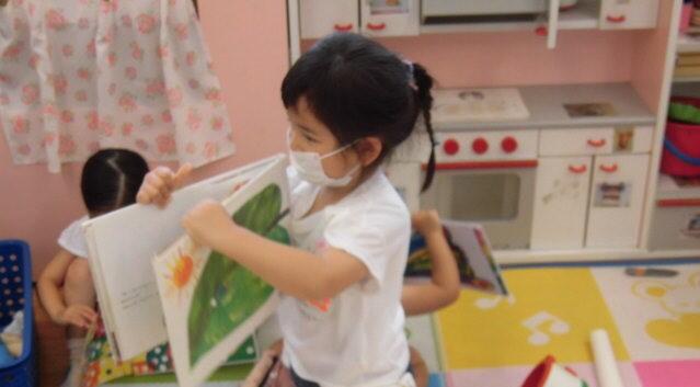 年少さんは、シャボン玉の絵本を読んでもらい、やる気満々・・・。