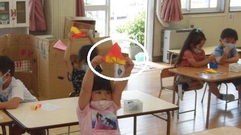 折り紙で ロケットを作りました。