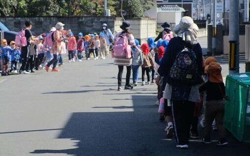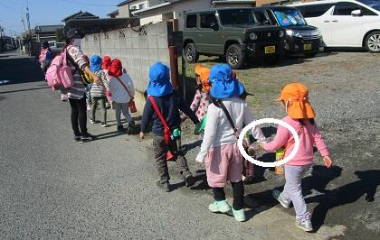 行き帰りには・・・・上級生が 下級生の手をつなぐ姿が・・・・