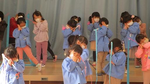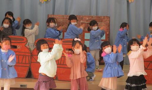 年長さんは・・・欠席者が多くいる中ですが・・・堂々と演技。