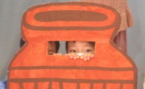 今日も・・・年長さんの音楽劇「アリババととうぞく」を みんなでしました。