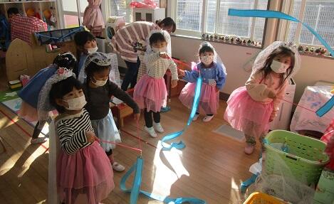 おまけ・・・年少さんの女子は・・・プリンセスの衣装をつけてもらいました。