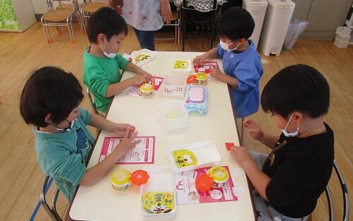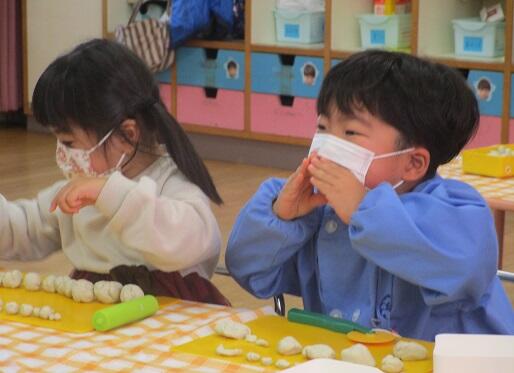 下は・・・お隣さんと一緒に・・・粘土で おかしを作って・・・