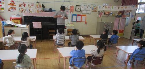 年少さんも・・・・体をほぐした後は、月間絵本。